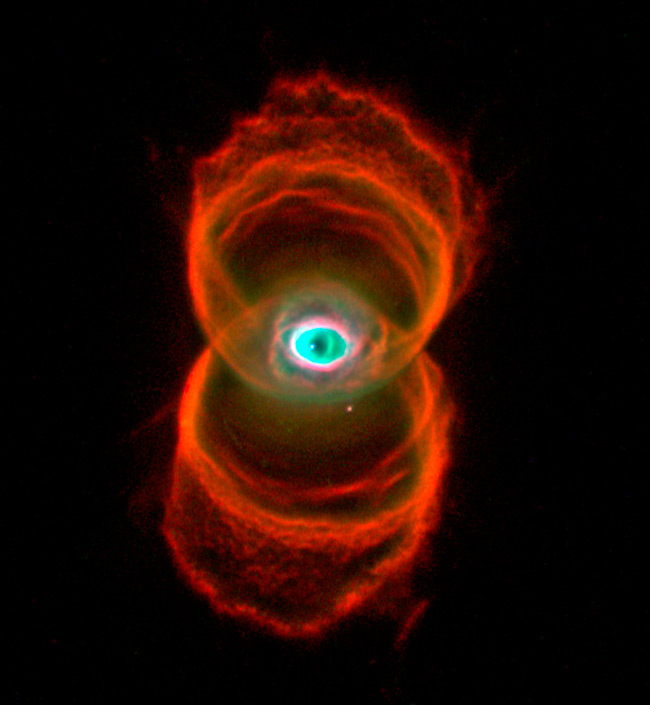 La Nebulosa Reloj de Arena se ha originado debido a que la estrella que se aprecia en el centro del «ojo» se encuentra en el tramo final de su vida y, tras agotar su combustible nuclear, está expulsando sus capas externas (de color anaranjado) en un proceso que en última instancia la llevará a convertirse en una enana blanca.