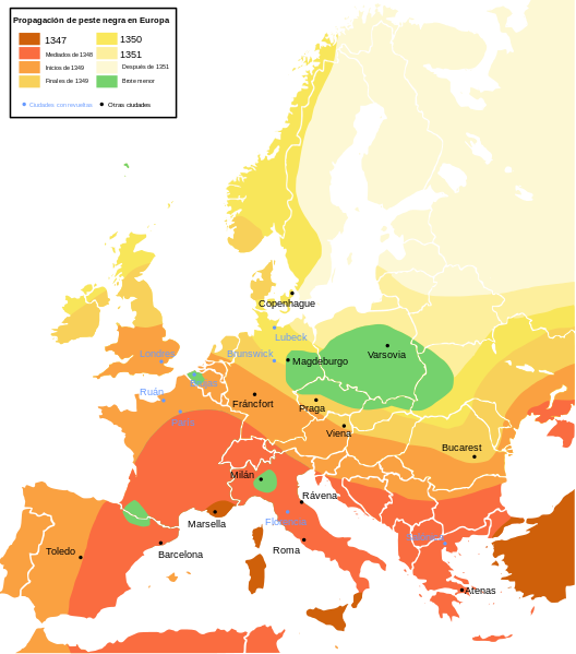 Expansión de la Peste Negra en Europa
