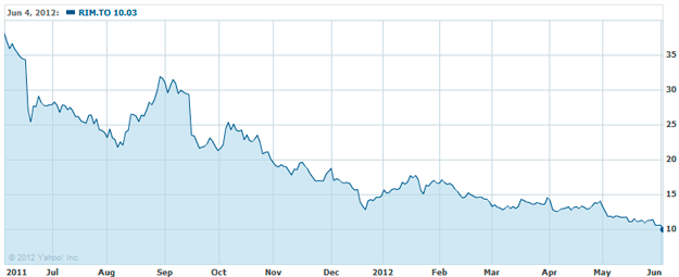Producto de este descenso, su capitalización en bolsa se ha situado en poco más de 5.000 millones de dólares, 16 veces menos que en el 2007. Sí, habéis leído bien, el valor de la compañía se ha visto dividido por 16 en sólo 5 años, lo que ha llevado a sus máximos responsables a plantear la posibilidad de vender parte de sus activos a fin de sanear las cuentas. Visto lo visto, parece más que evidente que a no ser que cambien las cosas radicalmente el futuro de RIM pinta muy, muy, negro.