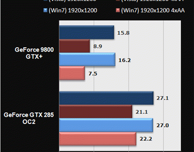 Para responder, al menos parcialmente, a este pregunta los chicos de Extreme Tech han probado los videojuegos Crysis, Far Cry 2, Left 4 Dead, World in Conflict y Company of Heroes en un ordenador con un procesador Intel Core i7 a 3,2 GHz y 3 GB de RAM DDR3 en el que han instalado ambos sistemas operativos y sobre el que han ido montando sucesivamente las tarjetas gráficas GeForce GTX 285, Radeon HD 4870 X2, GeForce 9800 GTX+ y Radeon HD 4850.