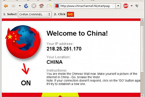 Tres programadores llamados Aram Bartholl, Evan Roth y Tobias Leingruber han creado una extensión para Firefox llamada China Channel que, una vez instalada, nos permite navegar a través de una IP china, de tal manera que cuando intentemos entrar a cualquiera de las múltiples webs censuradas por la dictadura asiática nos encontraremos con un bonito cartel en el que se nos informa que no podemos acceder a dicha página.