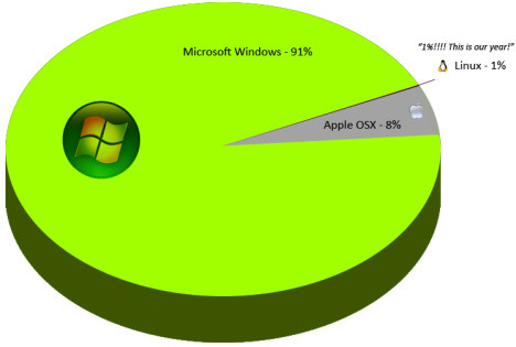 A pesar de que Windows Vista ha recibido un sinfín de críticas negativas; a pesar de que Windows XP es un venerable sistema operativo con 7 añitos a sus espaldas; a pesar de que cada vez hay más y mejores distribuciones de GNU/Linux disponibles; a pesar de que el software libre está dándose a conocer entre el público en general; en definitiva, a pesar de todos los pesares, los números cantan y estos indican que el porcentaje de uso de Linux, mal que me pese, es el que es: