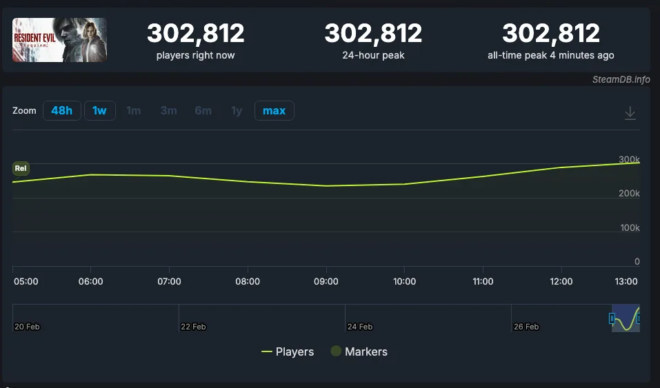 Pero, es que, incluso sin tener en cuenta lo que sucederá en los próximos días, esos 300.000 jugadores simultáneos que ya ha alcanzado superan el récord de usuarios en Steam de esta franquicia, que poseía hasta ahora el remake de Resident Evil 4.